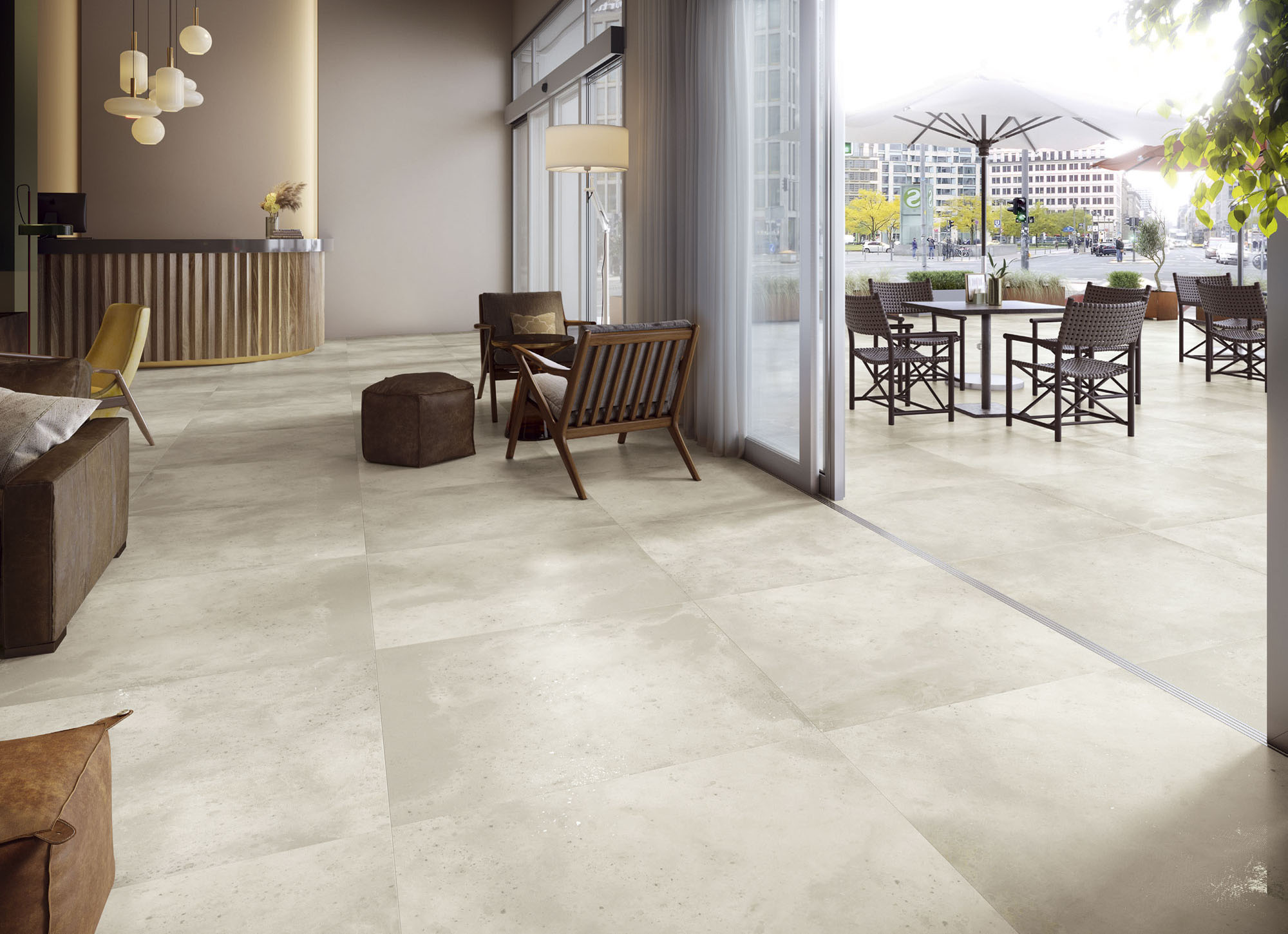 Για εξωτερικούς χώρους διατίθεται στις 3 αποχρώσεις (Bianco, Gris και Taupe) σε antislip εκδοχή (1969) στη διάσταση 100×100.